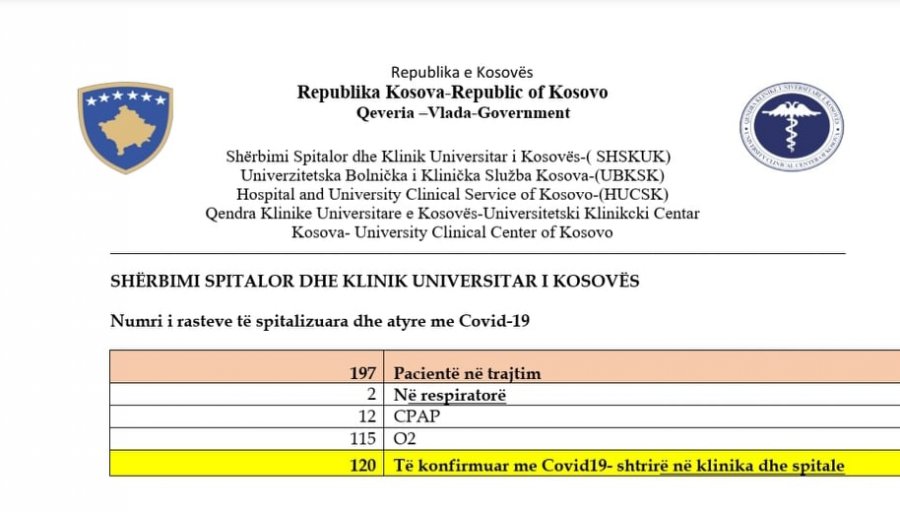 Gjatë së shtunës aty janë trajtuar gjithsej 120 persona të konfirmuar me COVID-19. Nga ta 2 janë në respiratorë e 115 me oksigjenoterapi.