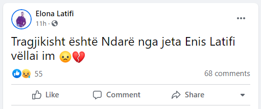 “Tragjikisht është Ndarë nga jeta Enis Latifi vëllai im”, ka shkruar motra e tij, Elona Latifi.