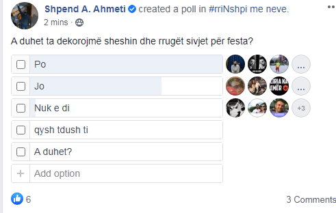 Ai në profilin e tij në Facebook, me anë të një sondazhi të vendosur, ka pyetur qytetarët se a duhet të dekorohet qyteti për këto festa, shkruan lajmi.net.