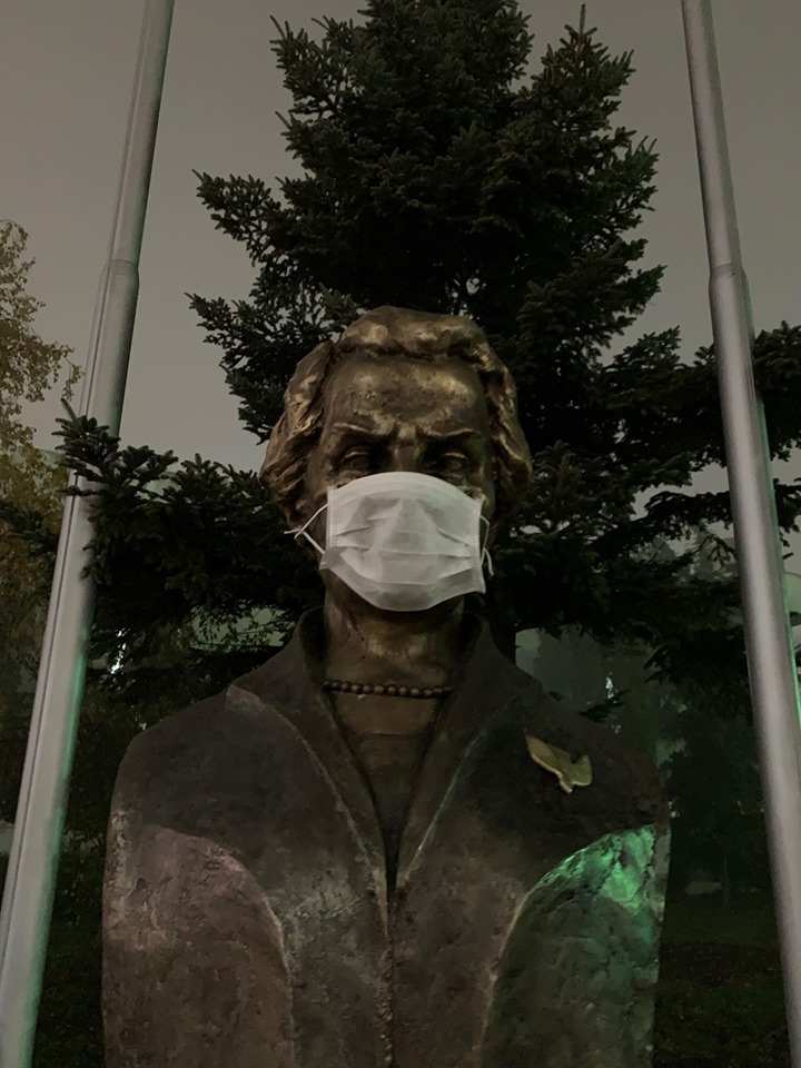 Si rezultat busteve, shtatoreve të ngritura të personaliteteve të larta në vend si: Nëna Terezë, Madeleine Albright, Ibrahim Rugova dhe Zahir Pajaziti, iu vendosen maska mbrojtëse.