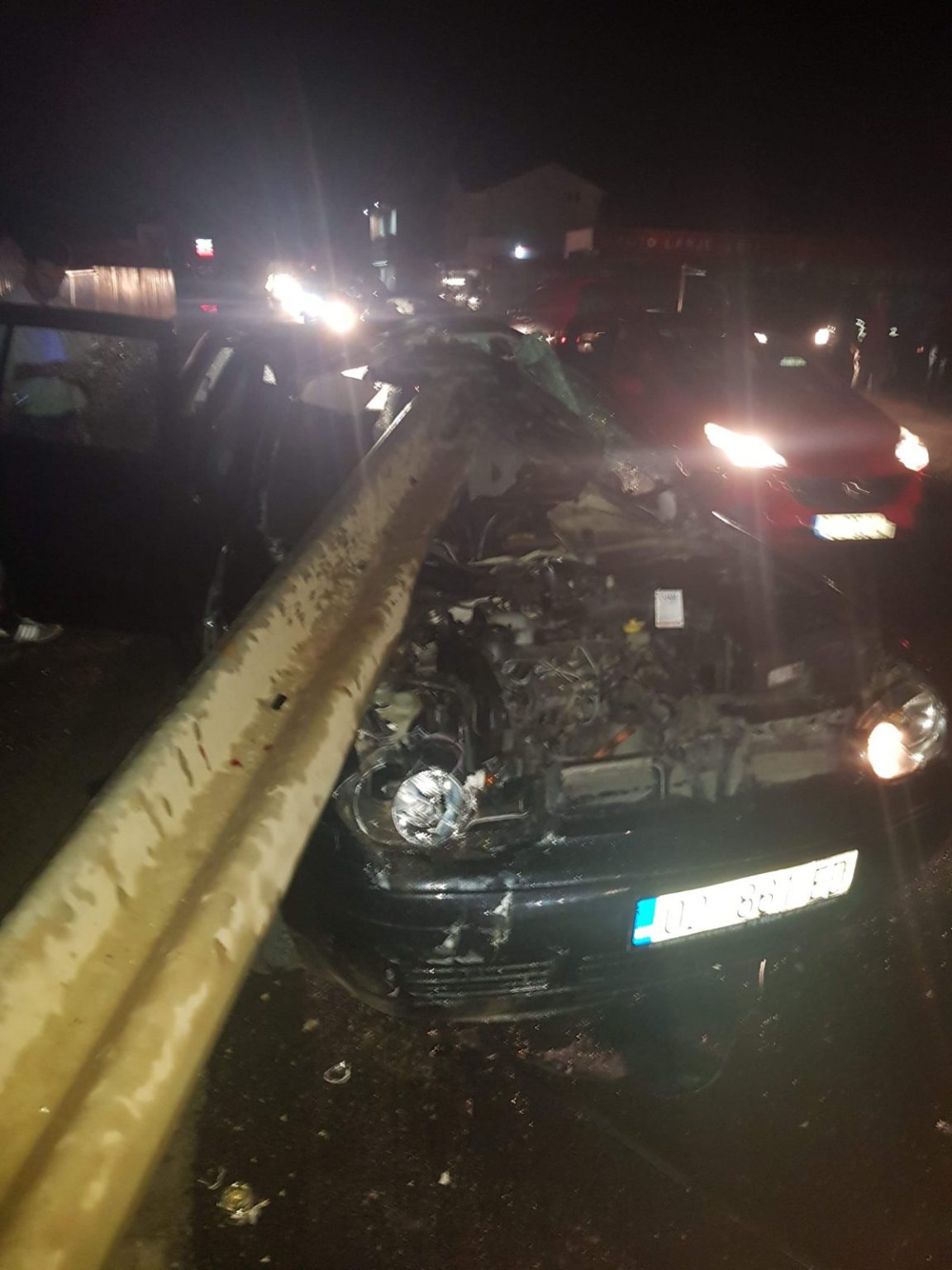Në foto shihet se një mbrojtëse e rrugës ka tejshkuar veturën nga xhami i përparmë.Nuk dihet nëse ka të lënduar.Njësitë e Policisë janë në vend të ngjarjes.Këto janë fotot e dërguara nga qytetari