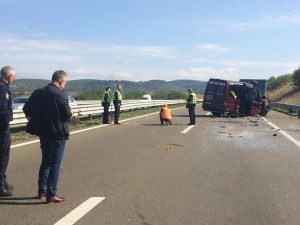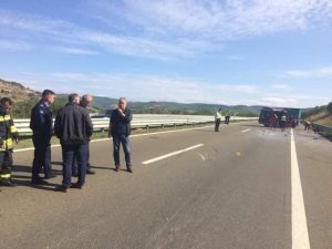 “Sot, më 05.10.2019, në ora 09:30, në autostradë, konkretisht në km e 36-të Vërmicë-Prishtinë (fshati Peqan Suhareke), ka ndodhur një aksident ku janë të përfshira dy automjete (një furgon udhëtaresh dhe një kamion). Si pasojë e aksidentit kanë humbur jetën dy persona dhe tre të tjerë janë lënduar. Kahja e autostradës në drejtim të Prishtinës është bllokuar, automjetet po orientohen në rrugë alternative”, ka thënë Kelani.