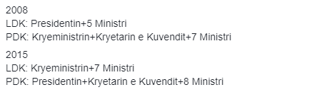Tutje ai rikujton ofertat për ndarje të pushtetit pas zgjedhjeve në vitet 2008 dhe 2015, ku LDK dhe PDK kishin qeverisur së bashku.