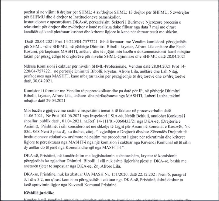 Këta të fundit po pretendojnë se komisioni përzgjedhës është formuar pa aprovim ligjor nga Kuvendi Komunal i Prishtinës.