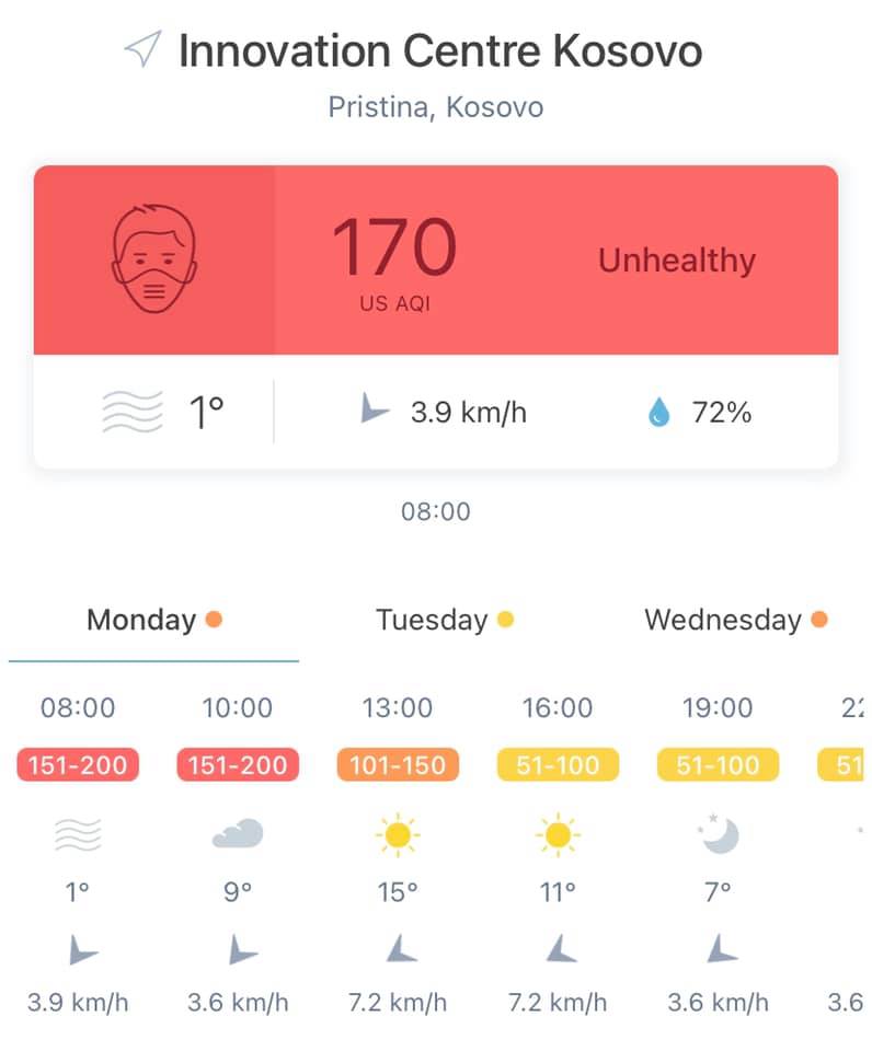 “Qëndroni në shtëpi! Ajri sot nuk është i shëndetshëm për personat e ndjeshëm dhe me sëmundje kronike!”, thuhet në publikimin e IKSHPK-së.