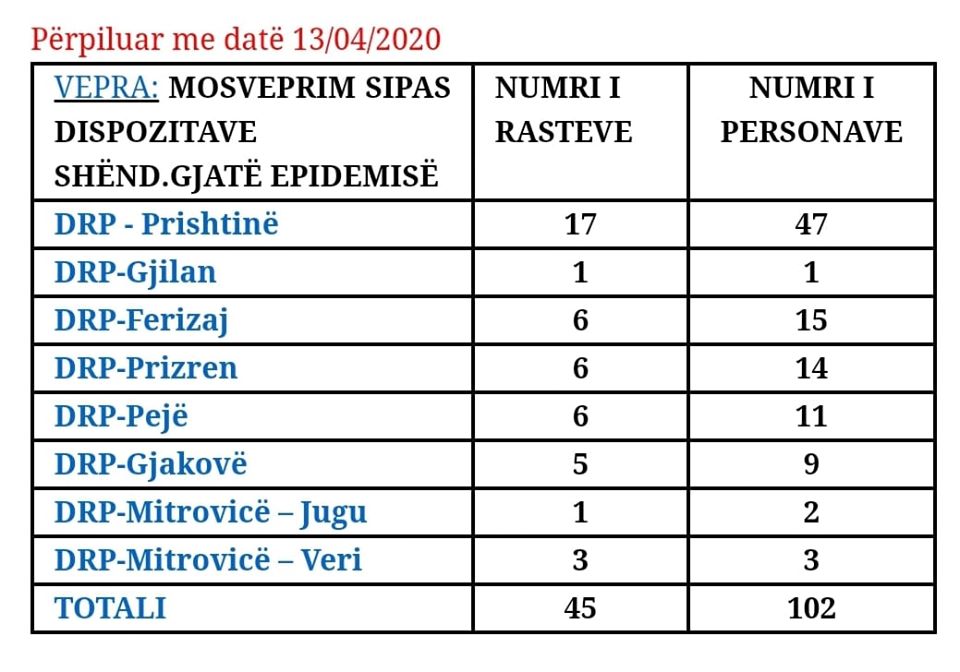 Numri më i madh i të arrestuarve lidhur me këtë çështje ishte në Prishtinë, 47 të arrestuar, duke vazhduar më pas me Ferizajn 15, Prizreni 15, Peja 1, Gjakova 9 e kështu me radhë.
