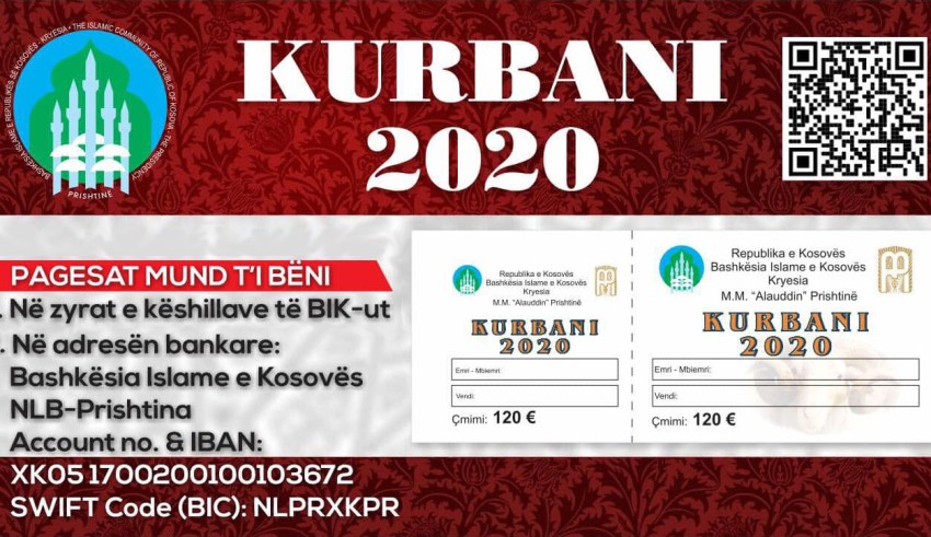 “Edhe këtë vit Kryesia ka vendosur që çmimi për një kurban të jetë 120 euro ose kundërvlera e këtij çmimi. Luteni që porositë e të interesuarve të na i dërgoni në kohën optimale, kur dhe mundemi ta kryejmë në plotni amanetin tuaj”, thuhet në njoftim.