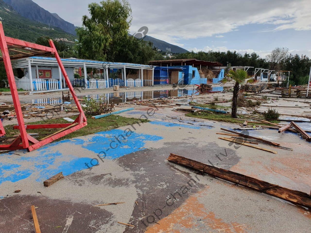 Pamjet që po iu sjellim më poshtë tregojnë se çfarë ka mbetur në Dhërmi një ditë pas stuhisë.