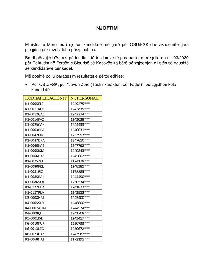 • Për QSU/FSK, për “Javën Zero (Testi i karakterit për kadet)” përzgjidhen këta kandidatë: