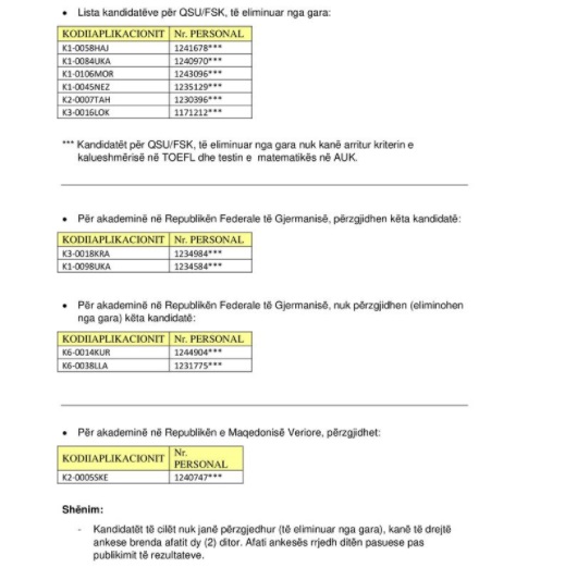 Ministria e Mbrojtjes i njofton kandidatët në garë për QSU/FSK dhe akademitë tjera gjegjëse për rezultatet e përzgjedhjes.