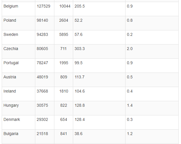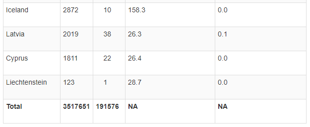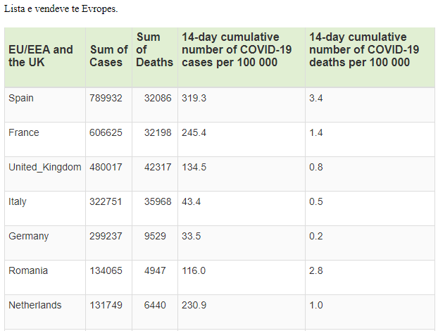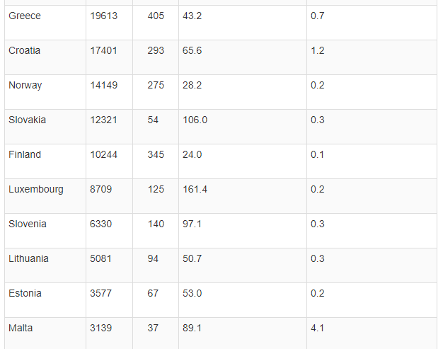Të gjitha këto shtete kanë mbi 120 raste të infektimeve në 100 mijë banorë, gjë që i bën të jenë pjesë e listës së shteteve me rrezik të lartë.