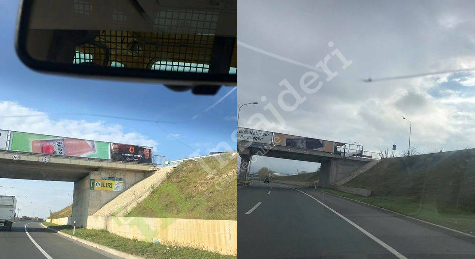 Dy fotografi të cilat po qarkullojnë në rrjetet sociale, po shfaqin gjendjen para dhe pas shkatërrimit të billbordit, i cili ishte vendosur në një urë mbikaluese në fshatin Babimofc.