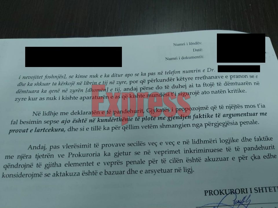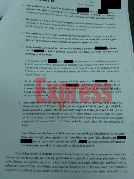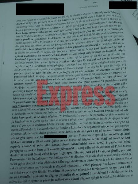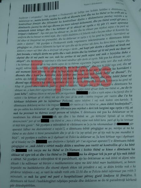 Viktima ka mohuar se ka kërkuar nga i dyshuari që të bisedojë me mjekët tjerë apo me drejtorin e Spitalit, për të ia siguruar aparatet për vajzën.