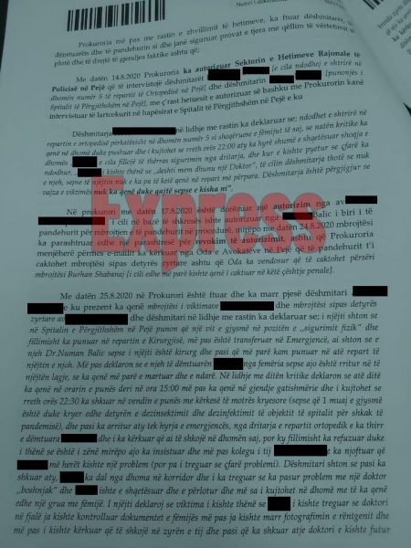 Ai po ashtu ka bërë të ditur se pasi ka shkuar aty, viktima ka dalë nga dhoma në korridor dhe i ka treguar se ka pasur problem me një doktor “boshnjak” dhe ishte e shqetësuar dhe e përlotur.