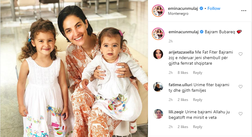 Ajo publikoi një fotografi të bukur me Ellën dhe Mian, të cilat i ka veshur e rregulluar, me të cilën uroi festën e Fitër Bajramit.