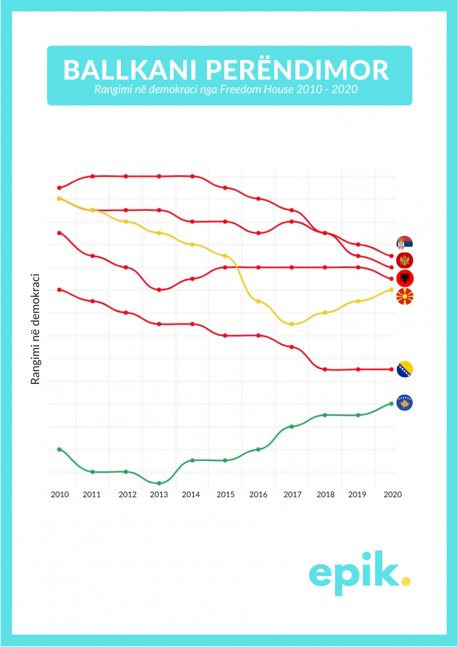 Tutje EPIK thekson se krahasuar me vitin 2010 të gjitha vendet e Ballkanit Perëndimor, përveç Kosovës, kanë demokraci më të dobëta, përkundër avancimit në procesin integrues.