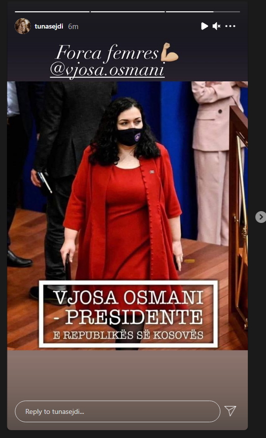 “Forca e femrës”, shkroi ajo, duke e etiketuar presidenten në postim.