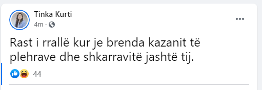 Për këtë aksion ka ardhur edhe reagimi i parë nga Lëvizja Vetëvendosje. Tinka Kurti e cila është anëtare e partisë së Kurtit dhe kandidate për deputete në zgjedhjet e 14 shkurtit ka thënë se “është rast i rrallë kur je brenda kazanit të plehrave dhe shkarravitë jashtë tij”.