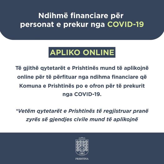 Komuna e Prishtinës ka hapur platformën online për ndarjen e ndihmës financiare prej 50 euro për çdo qytetar të Prishtinës të prekur me Covid.
