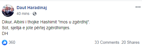 Dikur, Albini i thojke Hashimit “mos u zgërdhij”.