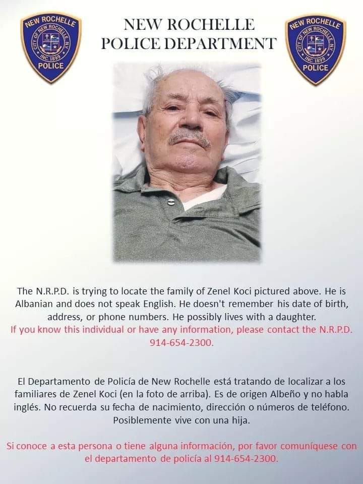 “Po mundohemi ta gjejmë lokacioni e familjes së Zenel Kocit. Ai është shqiptar por nuk flet anglisht. Ai nuk mbanë mend datën e tij të lindjes, adresën dhe numrin e telefonit. Ai jeton me vajzën e tij”, thuhet në njoftim.