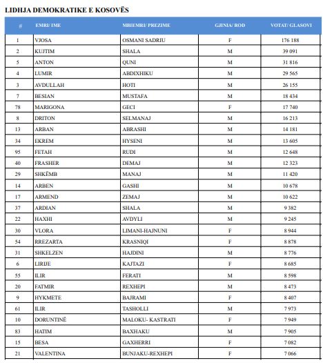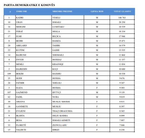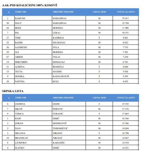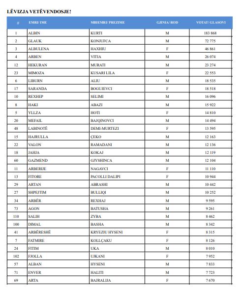 Në faqen zyrtare të KQZ-së janë publikuar emrat dhe numri i votave që ka marrë secili kandidat për deputet.
