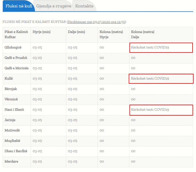 Qendra Kombëtare për Menaxhim Kufitar (QKMK), ka bërë të ditur se në tri pika kufitare të daljes nga Kosova, kërkohet testi për Covid-19.