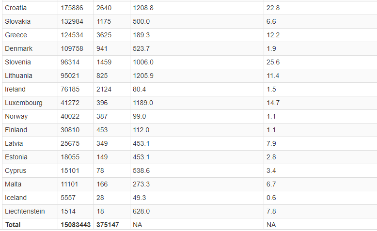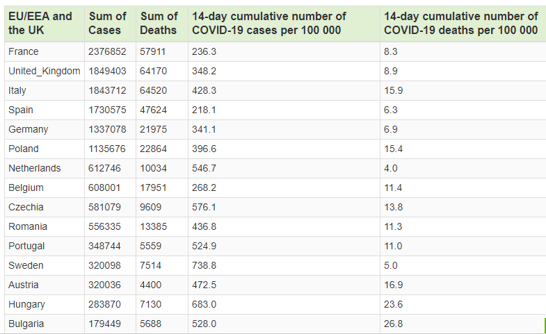 Pjesë e listës janë: Franca, Britania e Madhe, Italia, Spanja, Gjermania, Polonia, Holanda, Belgjika, Çekia, Rumania, Portugalia, Suedia, Austria, Hungaria, Bullgaria, Kroacia, Sllovakia, Greqia, Danmarka, Sllovenia, Lituania, Luksemburgu, Latvia, Estonia, Malta, Qiproja dhe Lihtenshtajni.