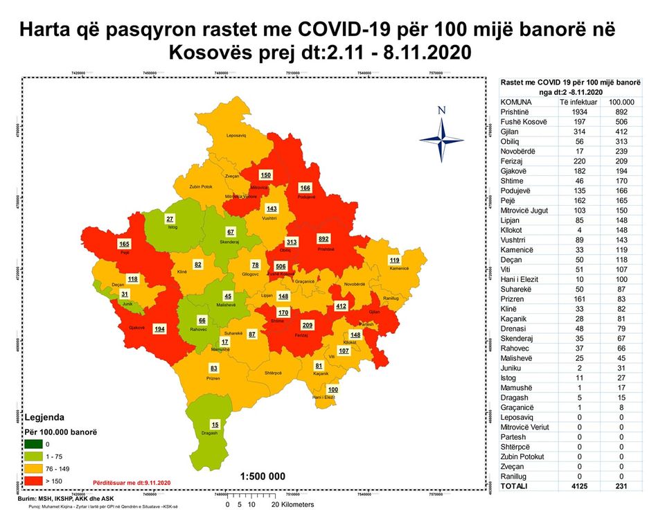 Kësisoj, janë ndërmarrë masa të veçanta për komunat e Kosovës, të cilat janë kategorizuar në ngjyrë të kuqe me rrezikshmëri të lartë, të verdhë me rrezikshmëri të mesme dhe të gjelbër me rrezikshmëri të ulët, shkruan lajmi.net.