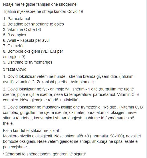 KUJDES: Ky është lajm i rremë, receta që po shpërndahet kundër koronavirusit nuk është e rekomanduar nga mjekët