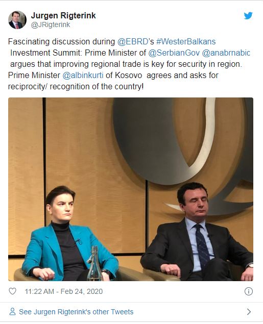 Ndërsa kryeministrja e Serbisë, Ana Bërnabiq, ka thënë se përmirësimi i tregtisë rajonale është thelbësor për sigurinë në rajon.