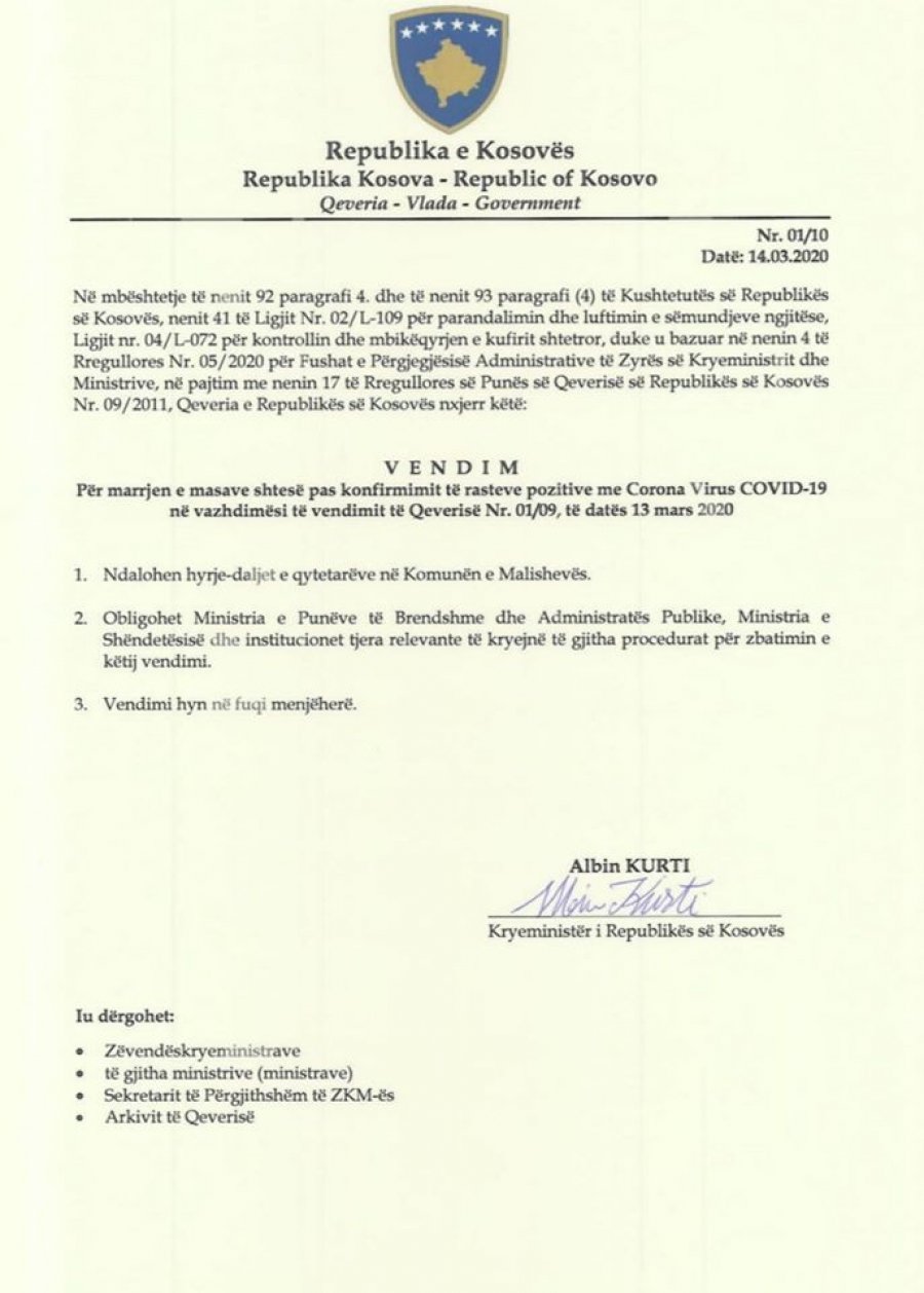 Kryeministri i Kosovës, Albin Kurti, njoftoi edhe zyrtarisht se “U votua me 10 vota për dhe 2 abstenime Vendimi për të liruar nga tarifa 100% importin e lëndës së parë nga Serbia dhe Bosnjë-Hercegovina”.