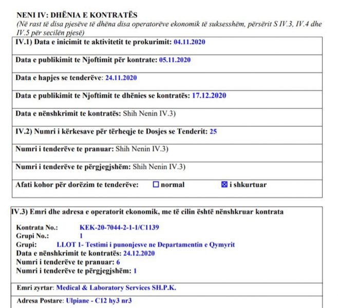 Ky laborator ka dal fitues në 5 llotet e tenderit të hapur nga KEK-u, teksa testimi i punëtorëve të KEK-ut ka nisur para disa ditësh.