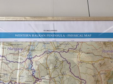 “Pasi harta në zyrën time është nxjerrë gjatë intervistës sime dhe është e paqartë, ka shkaktuar disa keqkuptime sot, unë po ndaj një foto të afërt të saj. Kjo është një hartë zyrtare e BE e Ballkanit Perëndimor. Kosova është atje dhe po ashtu është linja që ndan Kosovën nga Serbia”, thekson Lajçak.
