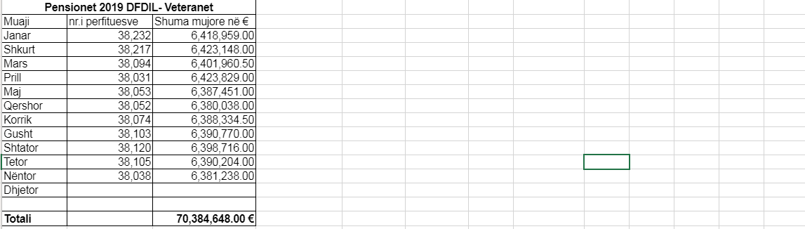 Nga numrat që shihen, vërehet se krahasuar me muajin tetor, në muajin nëntor pensione kanë marrë rreth 67 veteranë më pak.