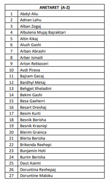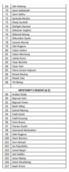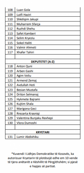 Në këtë listë janë 131 emra, duke përfshirë edhe kryetarin e ri. Aty përfshihen deputetët e rinj, kryetarët e degëve dhe emra të tjerë.