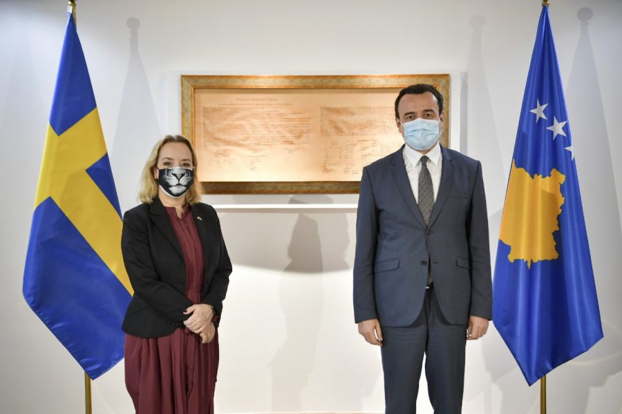 Në fotografitë nga takimi i Kurtit me ambasadoren e Suedisë, shihet se kjo e fundit ka vendosur një maskë të veçantë.