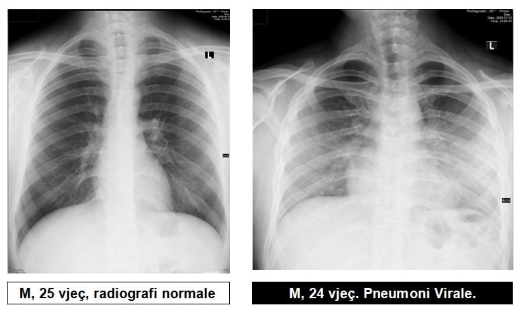 Radiologu në Spitalin Rajonal të Prizrenit, Sylejman Krasniqi tregon pamjet e mushkërive të pacientëve me pneumoni virale.