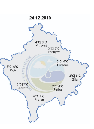 Temperaturat minimale do të lëvizin ndërmjet -2 deri 4 gradë Celsius, ndërsa maksimalet e ditës parashihen të lëvizin ndërmjet 5-10 gradë Celsius.