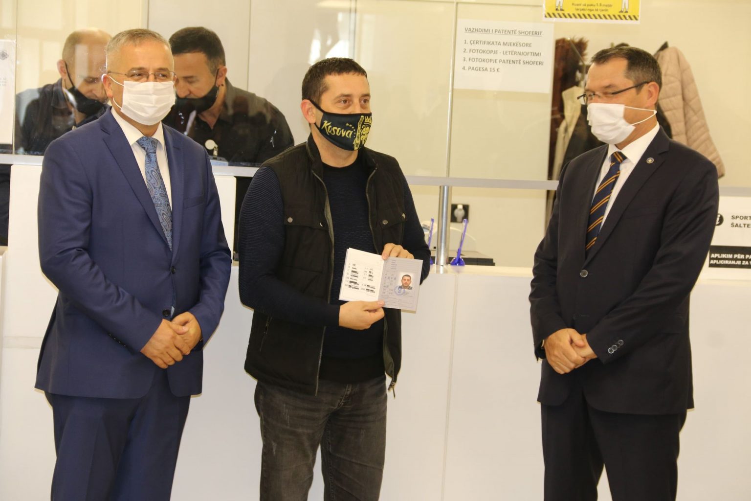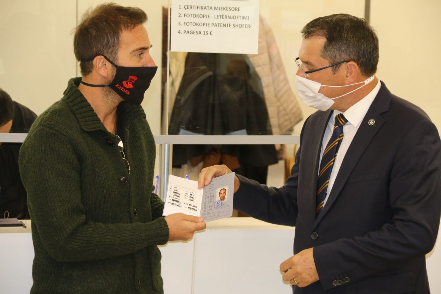 Patentë shoferët ndërkombëtarë, në këtë ceremoni u janë ndarë tre personave nga Bajram Geci, shefi i kabinetit të Ministrit Agim Veliu.