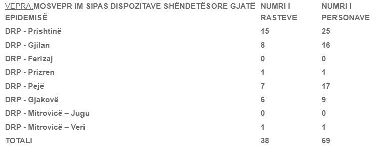 Në rajonin e Gjilanit janë shënuar 8 raste për “Mosveprim sipas dispozitave shëndetësore gjatë epidemisë” dhe janë ndaluar 16 persona.