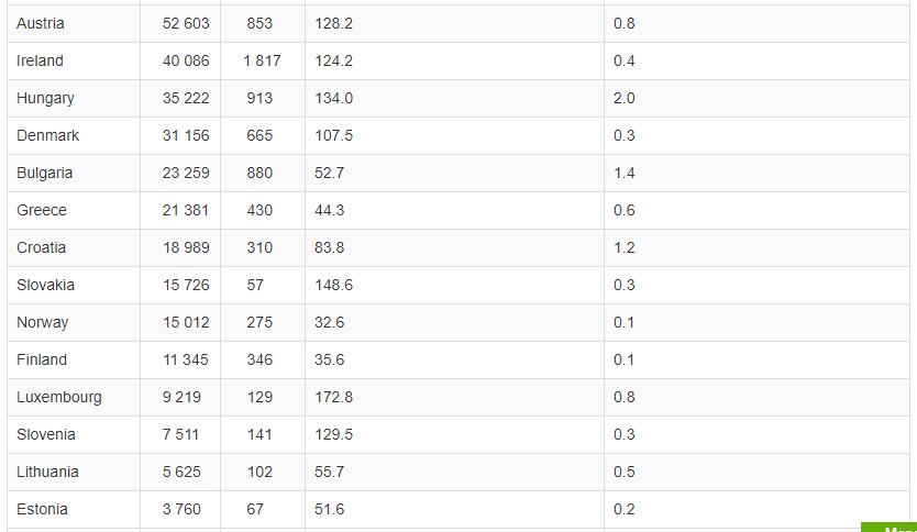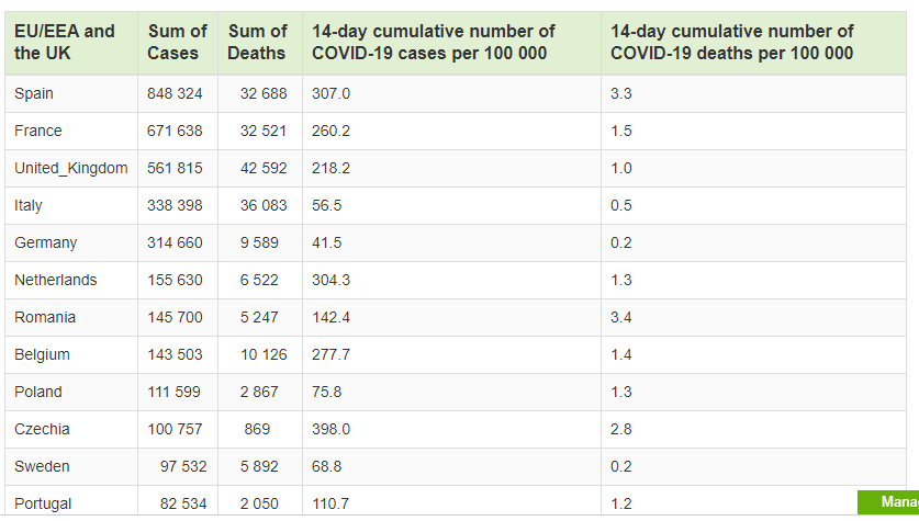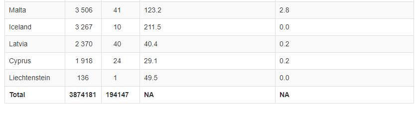 Të gjitha këto shtete kanë mbi 120 raste të infektimeve në 100 mijë banorë, gjë që i bën të jenë pjesë e listës së shteteve me rrezik të lartë.