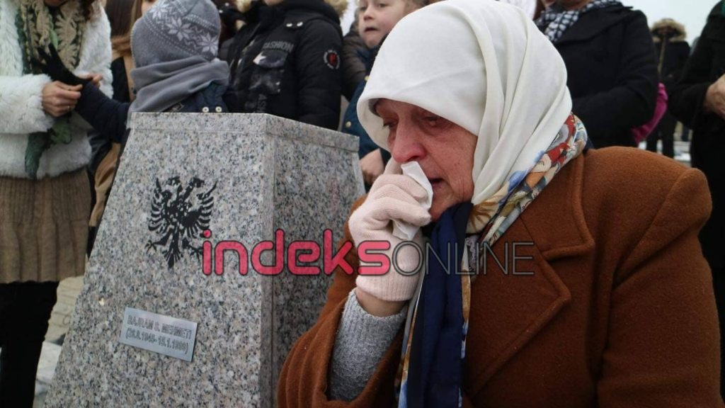Nëna e Hanumshahe Mehmetit nuk arriti dot t’i mbante lotët kur iu afrua varrit të së bijës 22- vjeçare që u masakrua më 15 janar 1999, në Reçak, shkruan IndeksOnline.