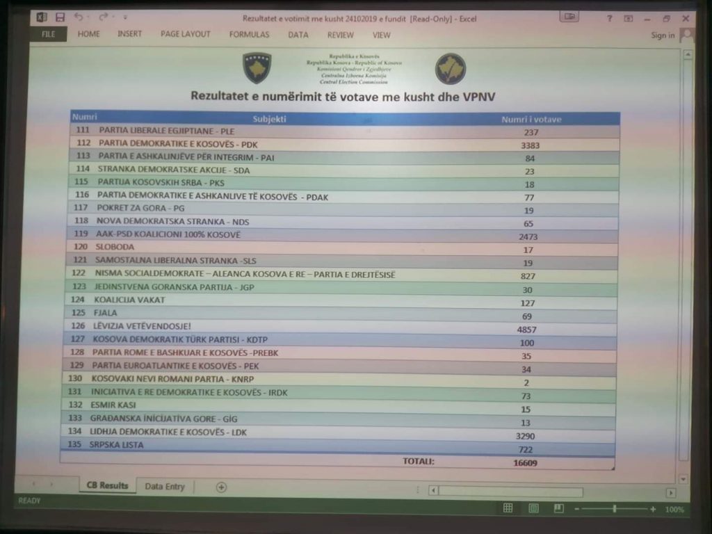 Deri më tani janë numëruar mbi 16 e 609 vota nga të cilat Vetëvendosje po prinë me 4857 vota gjithsej. E dyta mbetet PDK me 3383 vota, ndërsa LDK e treta me 3290 vota.