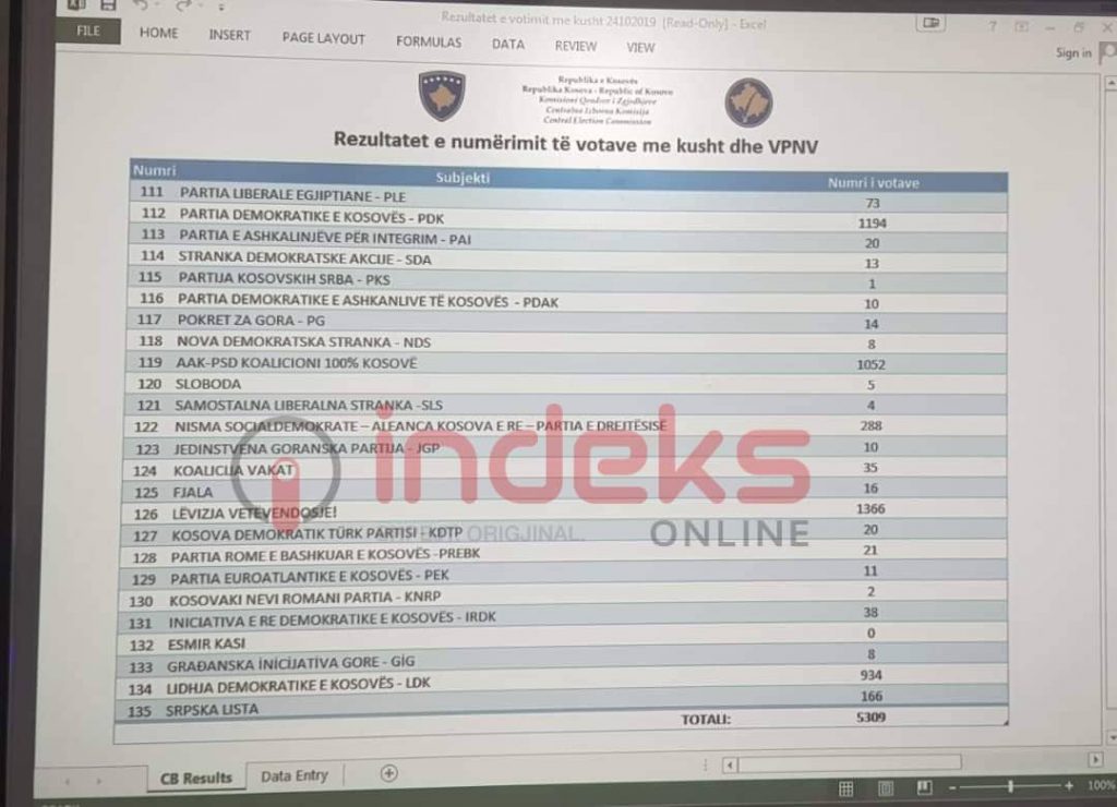 Lëvizja Vetëvendosje po prin me 1366 vota, shkruan Indeksonline.