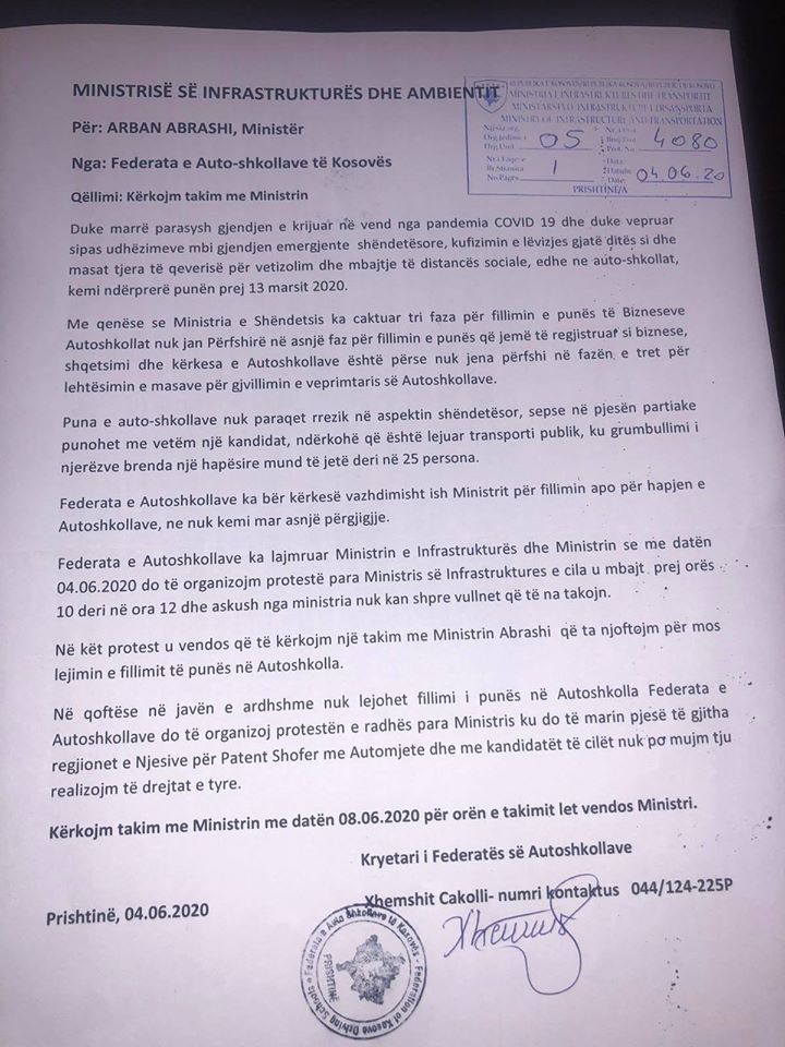 E, në shenjë revolte Federata e Autoshkollave të Kosovës, më 4 të këtij muaji mbajti edhe një protestë, derisa sot ishte paraparë të mbahej edhe një takim me ministrin e Infrastrukturës nga qeveria Hoti, Arban Abrashi, por edhe kërkesa ndaj këtij të fundit hasi në vesh të shurdhër.