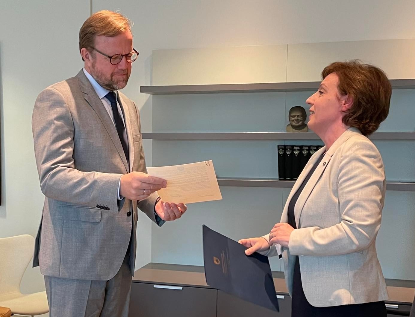 Ministrja e Punëve të Jashtme dhe Diasporës Donika Gërvalla ia dorëzoi sot aplikimin e Kosovës për anëtarësimin në Këshill të Evropës, zëvendëssekretarit të KE-së, Bjorn Berge.