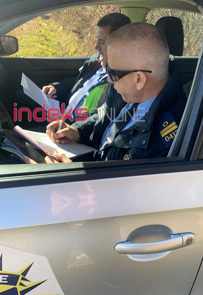 Indeksonline ka siguruar një fotografi ku shihen dy policë, në stilin e gangsterëve, duke gjobitur vozitës të automjeteve.