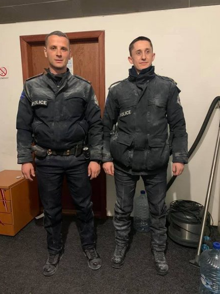 Lidhur me këtë nëpër rrjete sociale ka qarkulluar një fotografi e këtyre dy zyrtarëve policorë që kanë ndërhyrë mbrëmë për të shpëtuar qytetarët.
