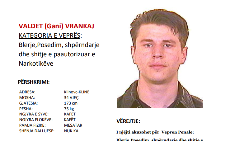 Policia e Kosovës – Drejtoria Rajonale e Policisë në Pejë, bazuar në ligj për publikimin e fotos me shënime tjera të personit të kërkuar më Urdhëresë të Gjykatës Themelore Pejё, me qëllim lokalizimin dhe rrjedhimisht arrestimin e tij, lëshon: Kërkesë për bashkëpunim me qytetarët.